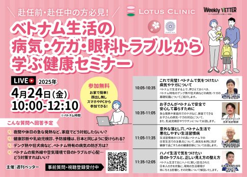 【 4月24日(金) 開催|オンライン形式 】赴任前・赴任中の方必見!ベトナム生活の病気・ケガ・眼科トラブルから学ぶ健康セミナー