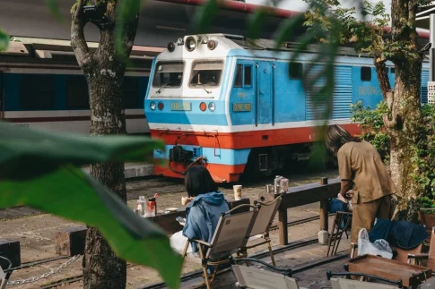 フエ駅構内に、機関車と行き交う列車が眺められる鉄道カフェ誕生!
