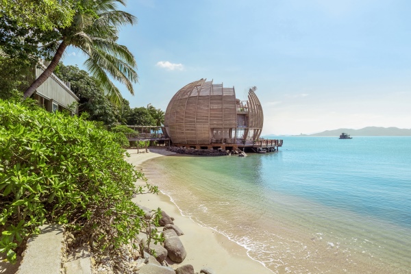 同リゾートは、ニャチャンから船で約15分の場所に位置する、自然に囲まれた静かな空間。全37棟のヴィラは独立した造りで、木の温もりが漂う建築が、訪れる人に安らぎをもたらしてくれる。カヤックやシュノーケリング、料理教室やお茶づくりなど、自然を五感で楽しむアクティビティーがそろう。