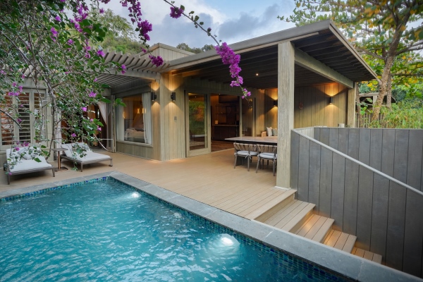 この度、家族との特別な時間を楽しめるヴィラ「ベイビュー・デュプレックス・プールヴィラ」が新登場。2階建て・180㎡のゆとりある造りで、上階は朝の光と湾からの風が心地よく吹き抜け、下階は木製家具とやわらかな照明が温もりを添える。モダンな快適性と地元素材が融合した設計は、家族それぞれのプライバシーを守りながらも、自然の中で心を通わせる特別な時間を生み出してくれる。