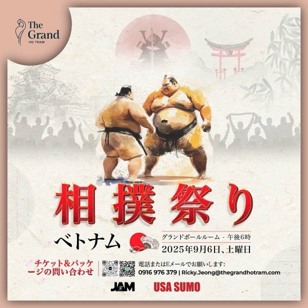 「ザ・グランド・ホーチャム」で,日本の伝統文化を体感できる「相撲祭り」を開催する。アメリカの力士による迫力のある取り組みをベトナムで楽しめる貴重なイベント。家族や友人と一緒に,相撲の魅力を体験してみよう。