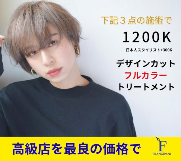静岡で,地方ながら全国版の雑誌特集や日本のトップサロンたちと一緒に海外研修など,数々の実績を持つ実力派サロン「FRANGIPANI」がハノイに登場! 日本式の丁寧な接客と高い技術,高級感あふれる落ち着いた空間で,特別な癒やしの時間を提供する。特に人気なのはカラーメニュー。髪や頭皮に優しい薬剤を使用し,理想の色味をかなえる自然な仕上がりになると好評だ。副社長が常駐し,技術監修をし「高級店を最良の価格で」をコンセプトに日本人&ベトナム人トップスタイリストと日本語通訳2名が在籍。今ならお得な3点セット「カット+カラー+トリートメント」が,ベトナム人施術120万VND/日本人施術150万VNDとなるキャンペーンを実施中!