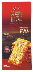 Cha Bong という、お肉に味付けをして加熱乾燥したものをふわふわに加工したものを載せた品。ベースのクラッカーの甘さと相まって、全体としては甘じょっぱい味わい。小さな3枚ごとに個包装になっているので食べ易いが、肉の持ち込みが禁止されている日本へは持ち帰れない。
