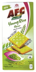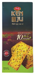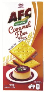 なんとクラッカーの形態で、ベトナムの庶民のおやつの代表格であるプリンを表現した商品。薄いサクサクとした食感の中にカスタードとカラメルの香ばしさとコク。プリンの「雰囲気」はあるものの、決してくどい甘さではないことと、程よい甘さがお手軽なスイーツ感を醸していて良き。
