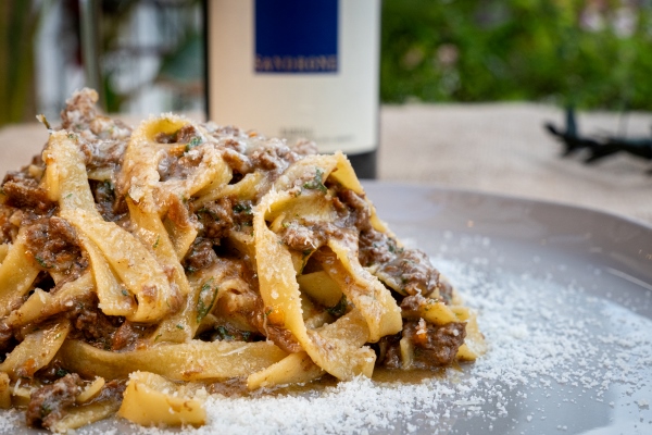 赤ワインでじっくり煮込んだ「牛ほほ肉のタリアテッレ」も見逃せない。ソースがよく絡んだ生パスタのタリアテッレに、パルメザンチーズのコクが重なり、豊かな味わいが口いっぱいに広がる。
