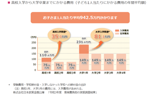 お子様の将来に向けて備えるべき金額を具体的に知る事で、漠然とした不安感から解放できるかもしれません。