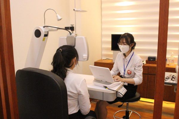 視力測定に関しては、日本の方法とは異なる場合がありますが、全ての眼鏡店で対応してもらえるかと思います。ただし、使用する機器や視力測定の指標の違いがあるため、精密な測定ができないケースが想定されます。日本ではランドルト環と呼ばれる輪の穴の空いている向きを答える視力測定が主ですが、ベトナム国内ではほとんど使用されません。そして、「見える」という感覚がその人それぞれによって大きく異なります。特に、「もう少し遠くがよく見えるようにしたい」というご希望をいただいた場合の「もう少し」の基準が、測定をする人の感覚で決められてしまうため、会話による意思疎通が必要不可欠になります。
