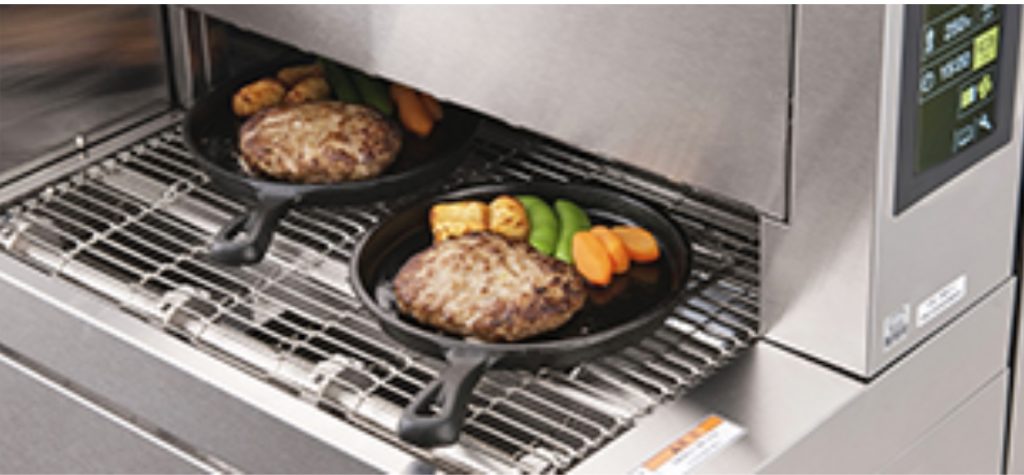 食材をベルトにのせるだけで、上下からの熱風で短時間・ムラなく焼き上げます。卵料理のやわらかい仕上げから魚・ピザの香ばしい焼き目まで幅広く対応。温度・風量・ベルト速度はタッチパネルで簡単設定(最高350℃を1℃単位で調整、よく使う設定は最大20件まで記憶可能)。大量調理に強く、レストランや居酒屋、ピザ店はもちろん、食品工場のセントラルキッチンにも向いています。設置スペースやメニューに合わせて、本体の長さやガス式/電気式を選べます。