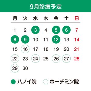 ・ホーチミン:9月16日(火)、22日(月)、24日(水)、26日(金)、27日(土)、29日(月)