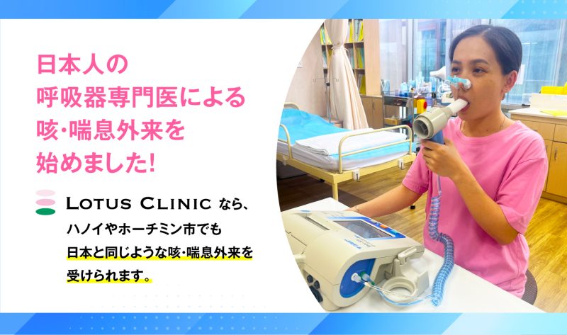 ロータスクリニックでは日本人の呼吸器内科専門医による「咳・喘息外来」を始めました。長引く咳症状が気になる方、喘息の持病がある方はお気軽にご相談下さい。