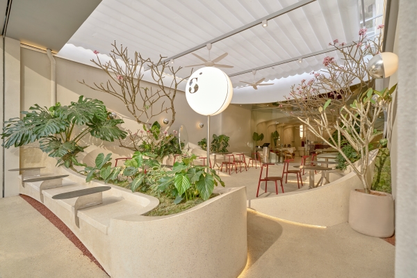 まるで光に包まれた別世界に迷い込んだような雰囲気。モダンな建築とグリーンが調和する開放的な空間で、ヨーロッパ風ブランチとアジアの風味が絶妙に融合したメニューが楽しめる!