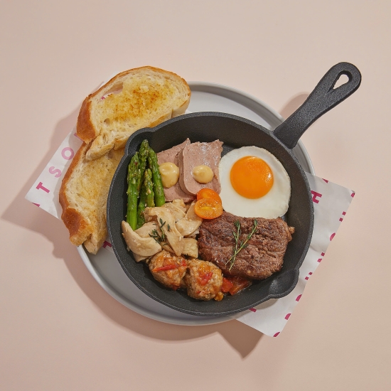 看板メニューの「RONDO」は、サクサクの層が美しく重なり合うパイ生地に、とろけるようなクリームがたっぷり。宇治抹茶、ベトナムコーヒーなど、多彩なフレーバーがそろい、見た目も味も飽きさせない。そして注目したいのが「Banh mi chao」。オーストラリア産リブアイステーキやトリュフオイルで炒めたきのこなど、伝統にモダンなひねりを加えた、まさに「SOKO」でしか出会えない品。