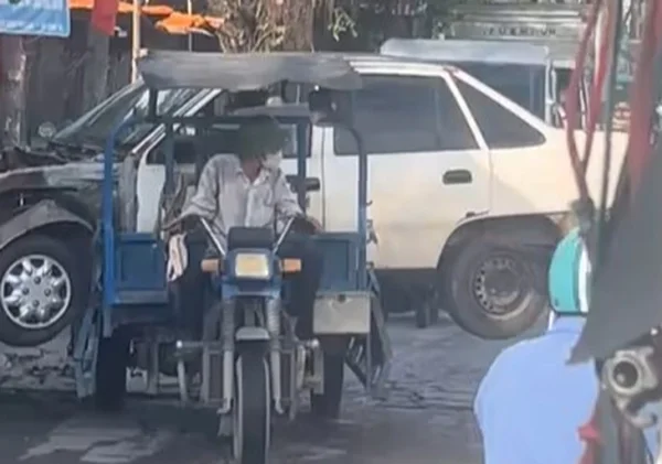 8月22日、ホーチミン市トイアン街区(旧12区)の道路で、三輪運搬車が4人乗りの中古車を積載して立ち往生し、交通渋滞を招いた。