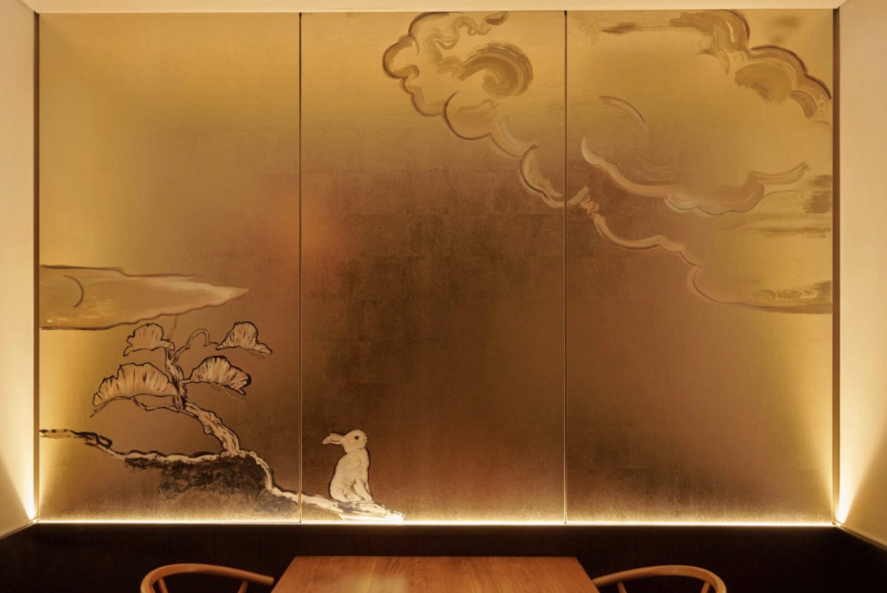 店内の個室や壁面を飾るのは、エルメスとのコラボでも知られる現代アーティスト・河原シンスケ氏による特別な書き下ろしアート。「雲の上のウサギ」には、日本の味・技・おもてなしを雲に乗せてベトナムへ届けたいという想いが込められています。