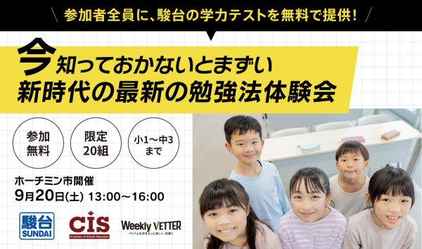 海外での生活,お子さんの学習について不安を感じていないだろうか。「駿台」とコラボし「ICTを活用した勉強体験会とセミナー」をホーチミン市で開催。参加者全員に「駿台」の学力テストを無料で提供!