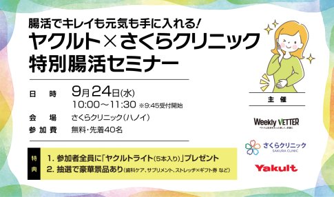 ローカルニュース【ハノイ開催|定員40名】腸からキレイに!美腸&免疫力アップセミナー<ヤクルト・さくらクリニック>