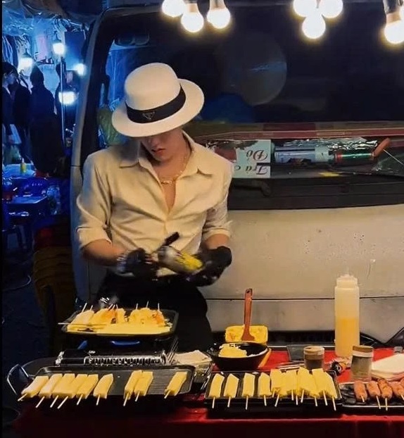 昨年に独立した彼は、ハリウッドスターからヒントを得て、独自のスタイルで屋台に立つ。