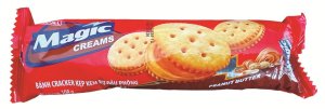 ライトなクラッカーに近い生地にピーナツバタークリームが挟まれた商品。ピーナツバターの量はさほど多くなく、クラッカーにある程よい塩気が引き立たせるピーナツの香りを楽しむ感じで、重すぎない・甘すぎないのが良い商品。コーヒーや紅茶、その他のドリンクにも合いやすく、個性は弱いかもだが、小ばら満たしにも丁度良く、そばにあると重宝しそう。