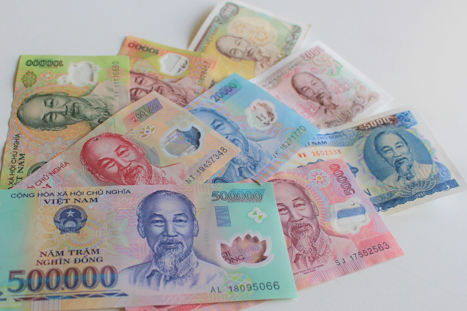 紙幣のデザインは色鮮やかで、額面ごとにサイズや色が異なります。特に5万ドン以上の高額紙幣はポリマー素材で作られており、丈夫で破れにくいのが特徴です。