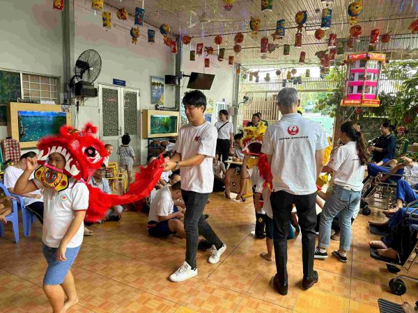 10月4日、「日本航空ベトナム支店」は「JCCH社会貢献委員会」と連携し、ホーチミン市の「Thien Phuoc社会保護センター」で支援イベントを実施した。同施設は障がいのある子どもや脳性まひの子ども約50名をケアする拠点で、インスタントラーメン、離乳食粉末、洗濯洗剤、おむつなどの物資を寄贈した。中秋節の時期でもあり、子どもたちは獅子舞や歌を披露。交流のひとときが笑顔を生み、参加者に大きな活力を与える機会となった。