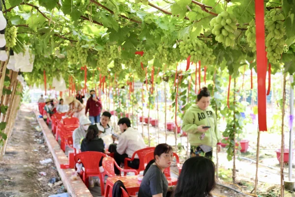 同農園のオーナーは、葡萄の産地として有名な旧ニントゥアン省出身で、かつてはツアーガイドをしていたが、故郷の葡萄畑を街の中心部で再現しようとこの地に開業。「故郷の農業の特性と専門知識を守りつつ、観光業と融合させたいと思った」と語る。園内には観賞用と食用、併せて7品種の葡萄が揃っていて入場は無料。将来的には栽培過程を学べる葡萄狩り体験コーナーも開設したいとのこと。