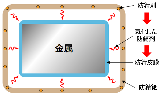 気化することにより金属表面上に防錆皮膜を形成します。