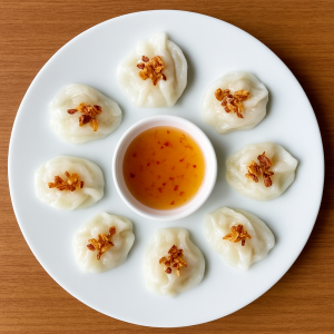 透き通るような皮と、上に散りばめられたフライドオニオンのカリッとした食感が絶妙にマッチ。皮自体はあっさりしているため、ヌクマム(魚醤)につけて味わうのが一般的です。