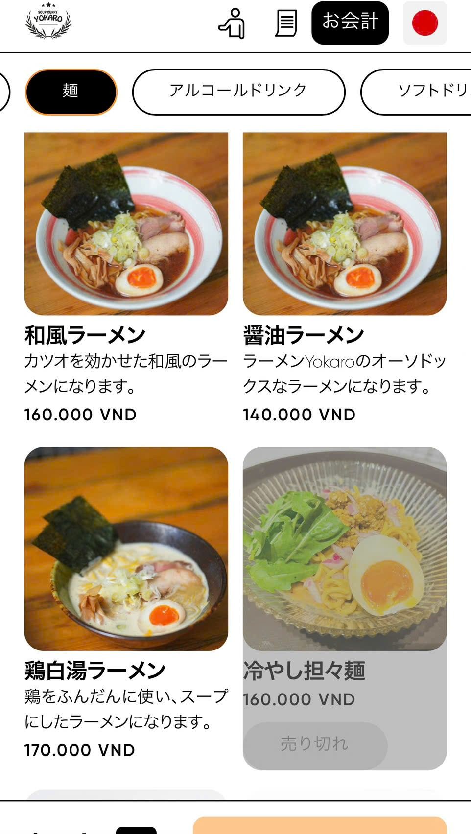 スパイスたっぷりの本格スープカレーが楽しめる「Soup curry YOKARO」では,「和風ラーメン」「醤油ラーメン」「鶏白湯ラーメン」「冷やし担々麺」などのラーメンメニューが新たに仲間入り。