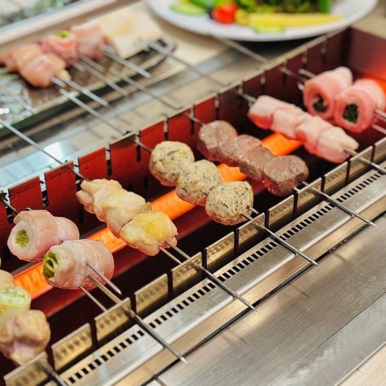 メニューは寿司、定食、麺類、一品料理など日本食を豊富にそろえており、誰と訪れても楽しめる内容となっている。なかでも注目したいのは、テーブルに設置された電気グリルで串焼きを自分で焼ける点だ。普段味わえないここならではの体験を、ぜひ試してみてほしい。火を使わず安全で、子ども連れでも楽しめる。香ばしい匂いと焼ける音を間近に楽しみながら、自分で焼く体験は食事そのものを一層盛り上げてくれるだろう。「千葉さん」は、串焼きを自ら焼く楽しさと、和の空間の落ち着きが重なる心和む時間を過ごすことができる場所だ。