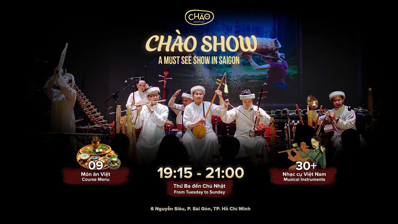 ベトナムの伝統音楽をテーマにした芸術プログラム「Chao Show」は、30種類の民族楽器とオリジナル楽曲で、音楽を通してベトナムの魅力を表現します。音楽・映像を融合し、最先端のImmersive Audio(立体音響)による臨場感あふれる体験を届けます。
