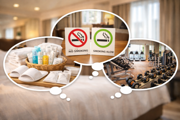 アメニティやWi-Fi、朝食の有無も忘れずに確認しておきましょう。特に、最近は環境配慮の観点からアメニティを置かないホテルが増えてきています。「歯ブラシやシャンプーがあると思っていたのにない」という事例も少なくありません。また、部屋によっては喫煙可だったり、朝食がついていたり、ジムを利用できたり…ということもあります。自分の予約しようとしている部屋はどのような条件の部屋なのか、要チェックです。
