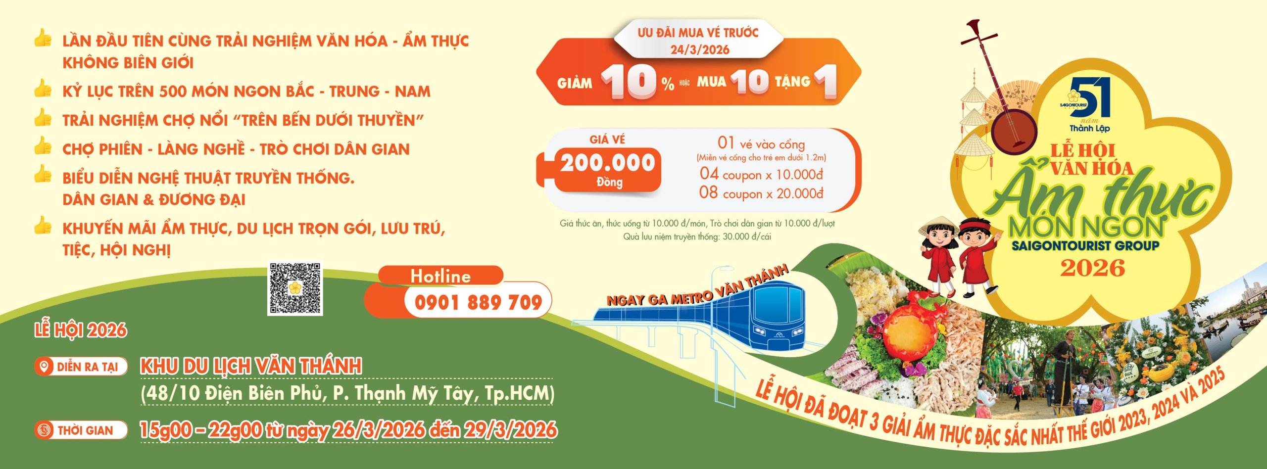 ベトナム各地の名物料理や伝統の味を一度に楽しめる人気のグルメイベント。多彩な屋台や料理が集まり,ベトナムの豊かな食文化とにぎやかな雰囲気を満喫することができる。家族や友人と一緒に楽しめる食の祭典だ。