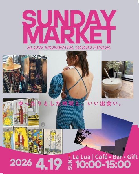 「好き」と「楽しい」をシェアするマーケットイベント。ファッションをはじめ、耳つぼジュエリーやタロット、腸マッサージなど多彩な体験が楽しめます。LaLuaのドリンクとともに、心地よい時間をお過ごしください。ご来場の際はバッグをご持参ください。