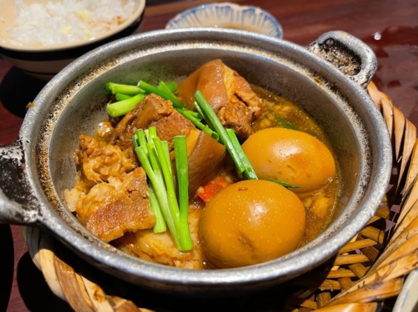 メニューは野菜料理や肉料理、ご飯ものまでベトナムの家庭料理が幅広くそろっている。「ソフトシェルクラブ」は、カニのサクッと感とうま味を楽しめる一品。豚バラ肉とゆで卵を甘辛く煮込んだ「ティット・コー・チュン」は、豚バラに甘辛い味がしっかりしみ込んでおり、満足感のある料理だ。