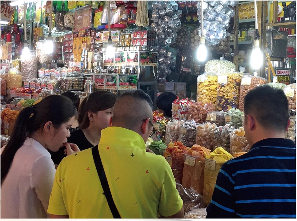 安く買うためのコツは、まず売り子に親近感を与えること。笑顔で「Xin Chao !」とあいさつするだけでも第一印象が違います。何度か通い、相手に顔を覚えてもらえれば、たとえベトナム語が話せなくても適正な金額を提示してくれるはずです。二つめは、まとめ買いをすること。欲しいものを少量だけ買うのでは駆け引きの材料も足りないので、「2個買うから、もうちょっと安くして」というふうに交渉してみましょう。