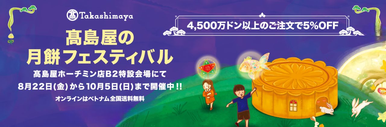 家族や友人と過ごす特別なイベント、「中秋節」は今年は10月6日(月)です。ベトナムではこの時期、企業間のご挨拶として月餅を贈るのが一般的で、取引先や社内配布の準備が早めに進みます。ホーチミン髙島屋・地下2階では「月餅フェスティバル」を開催中。ギフトにも自分用にも選びやすいラインアップを販売しています。今回はその中でもおすすめのギフトセットをご紹介します。