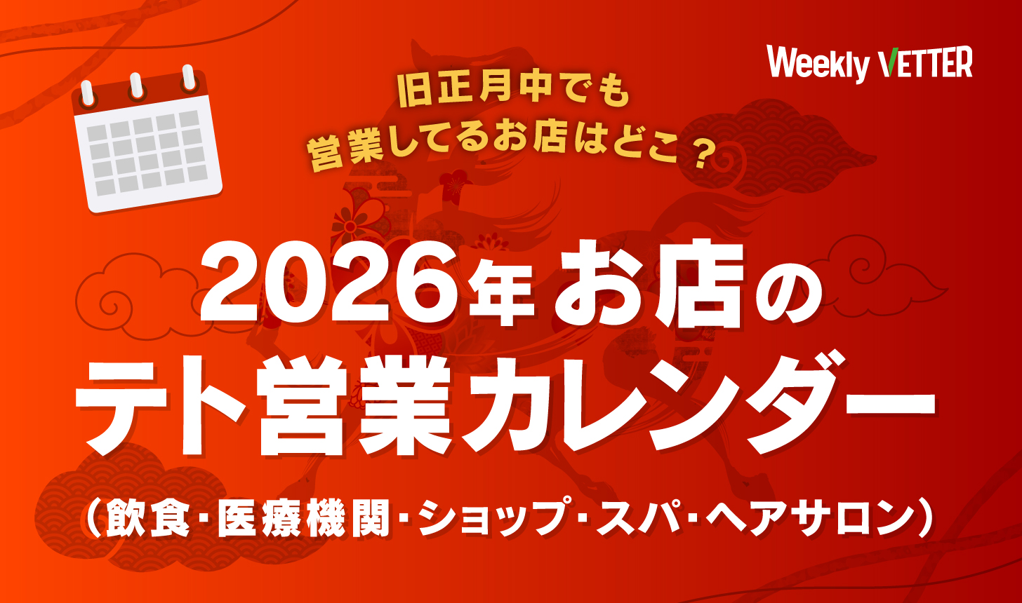 そこで今回は、週刊Vetterが集めたテト中の営業情報(飲食店・医療機関・ショップ・スパ)を、カレンダー形式で一挙公開します!